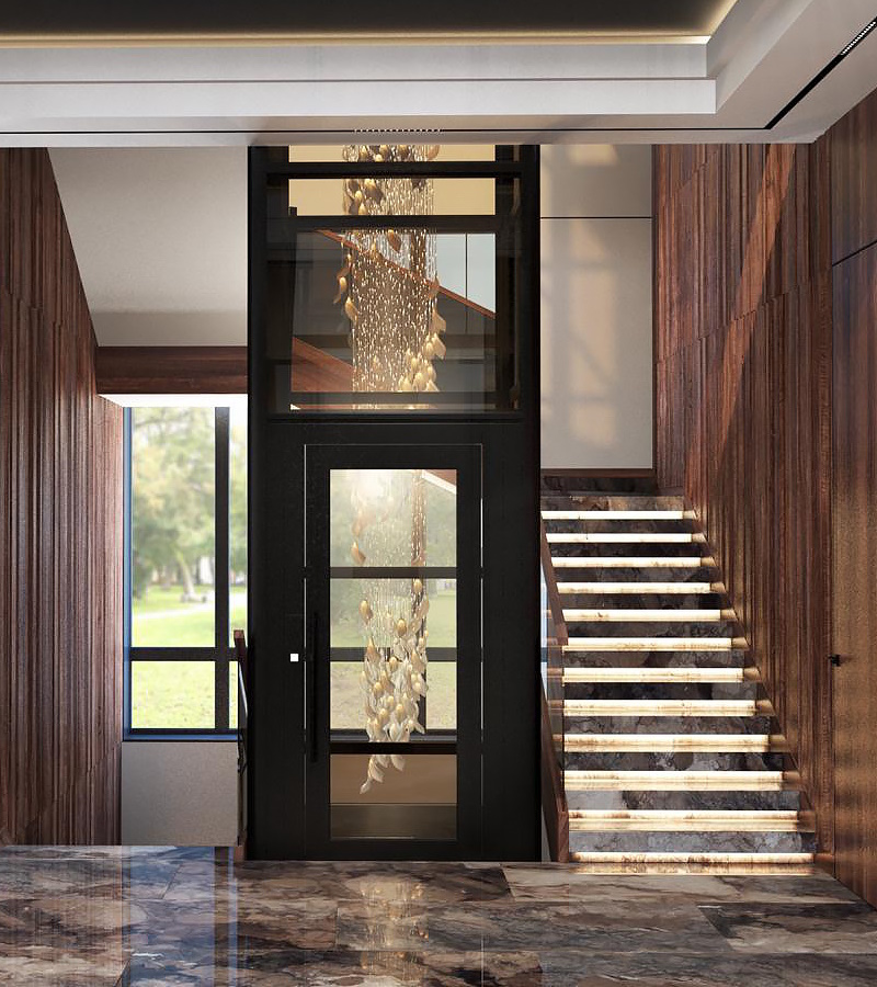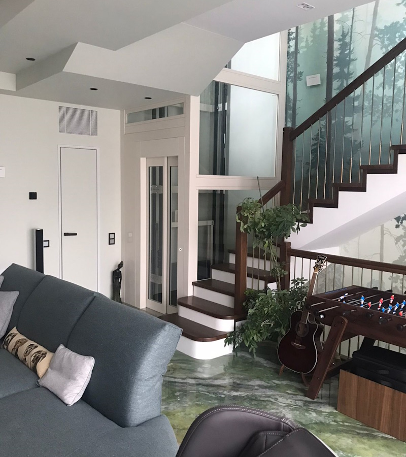 Дизайн. «Никаких проблем» - ответим мы на вопрос о личном предпочтении заказчика по дизайну домашнего лифта и будем в корне правы. Домашние лифты прекрасно вписываются в общее пространство интерьера. Стереотип о «стальном холодном устройстве» посреди оазиса тепла и уюта быстро развенчивается, когда становится ясным, что можно отделать кабину и шахту любыми материалами. Чаще всего выбирают стеклянные, деревянные или пластиковые панели, потому что они смотрятся эстетичнее всего.