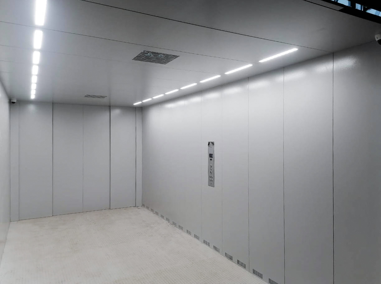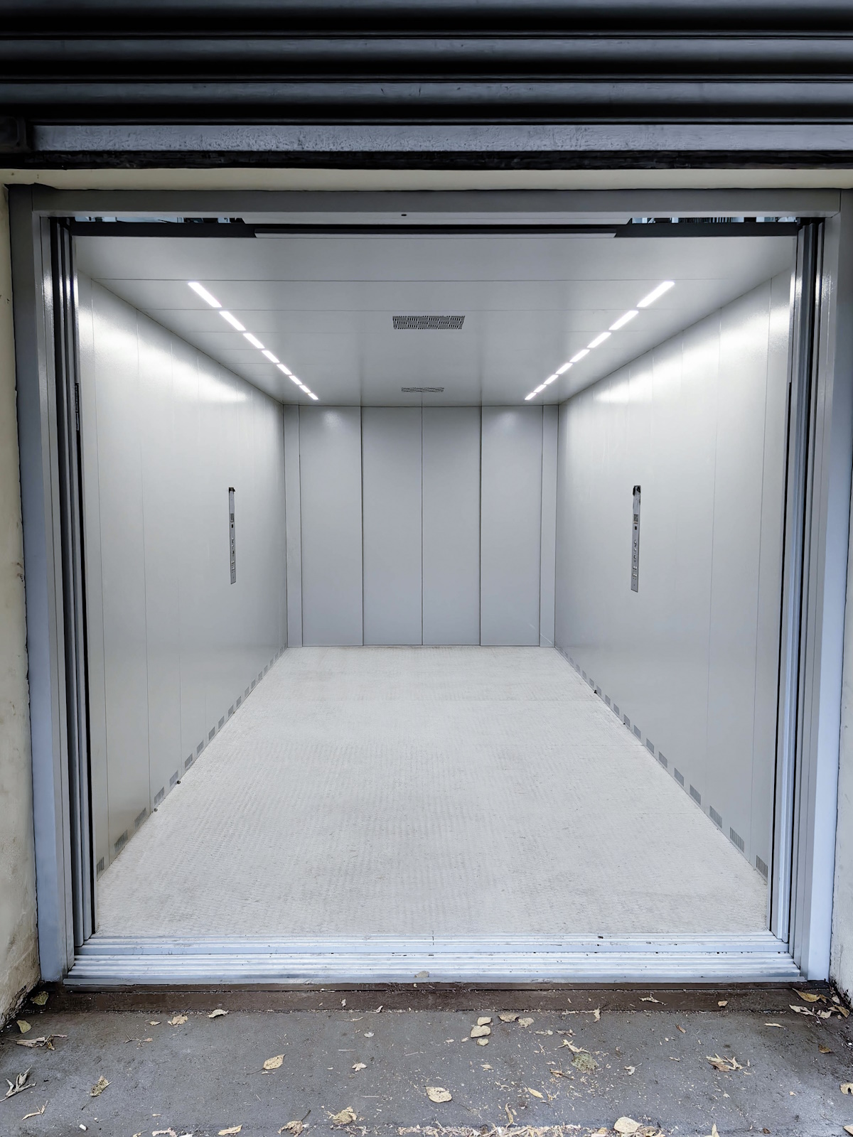 - Размер кабины 2800 × 6100 × 2500 мм — просторный большой лифт;